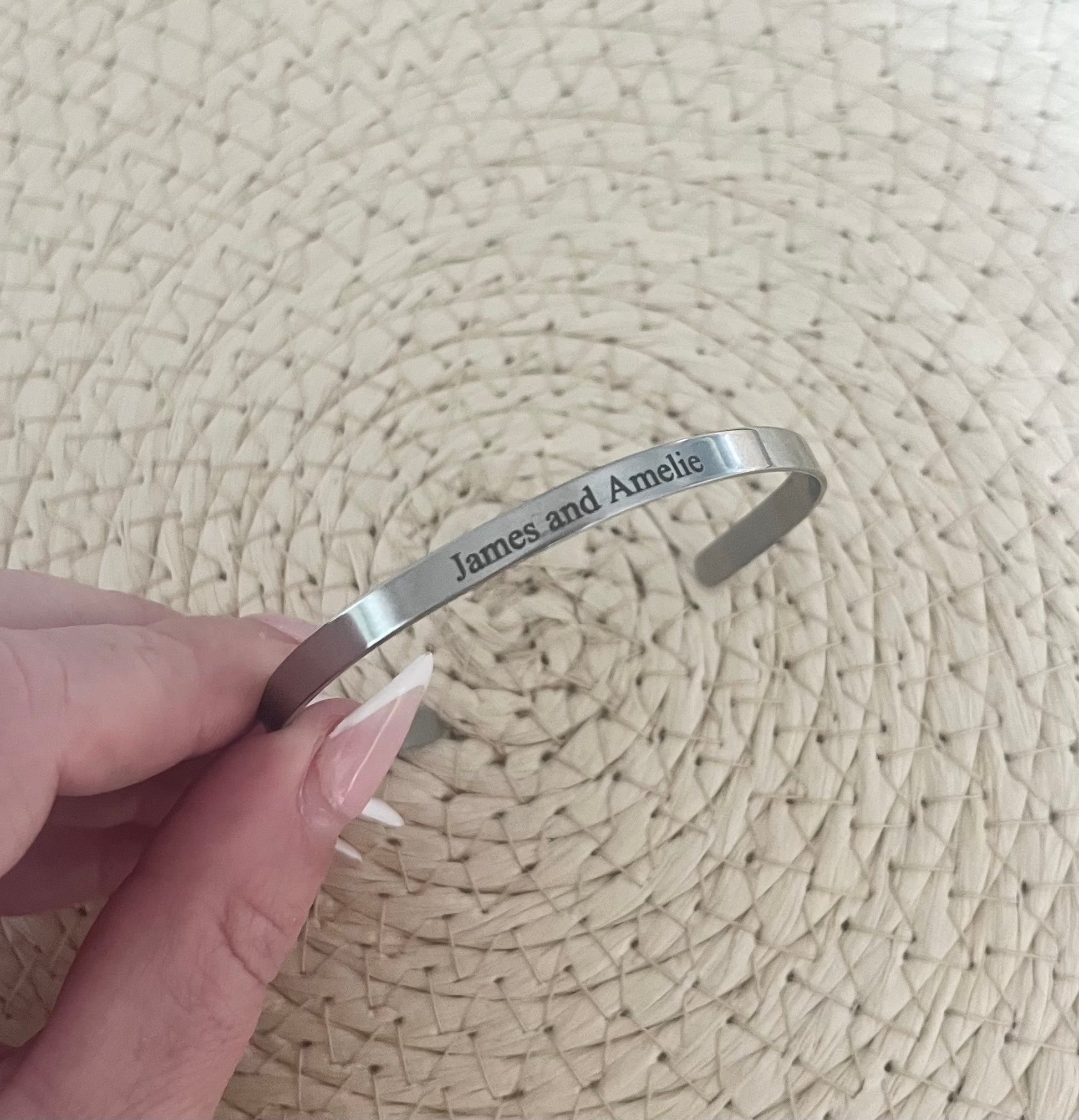 Engraved Personalised Cuff Bracelet for Mum, Custom Bangle with Children's Names, Mama Bracelet, Minimalist Bangle with own Message, Women