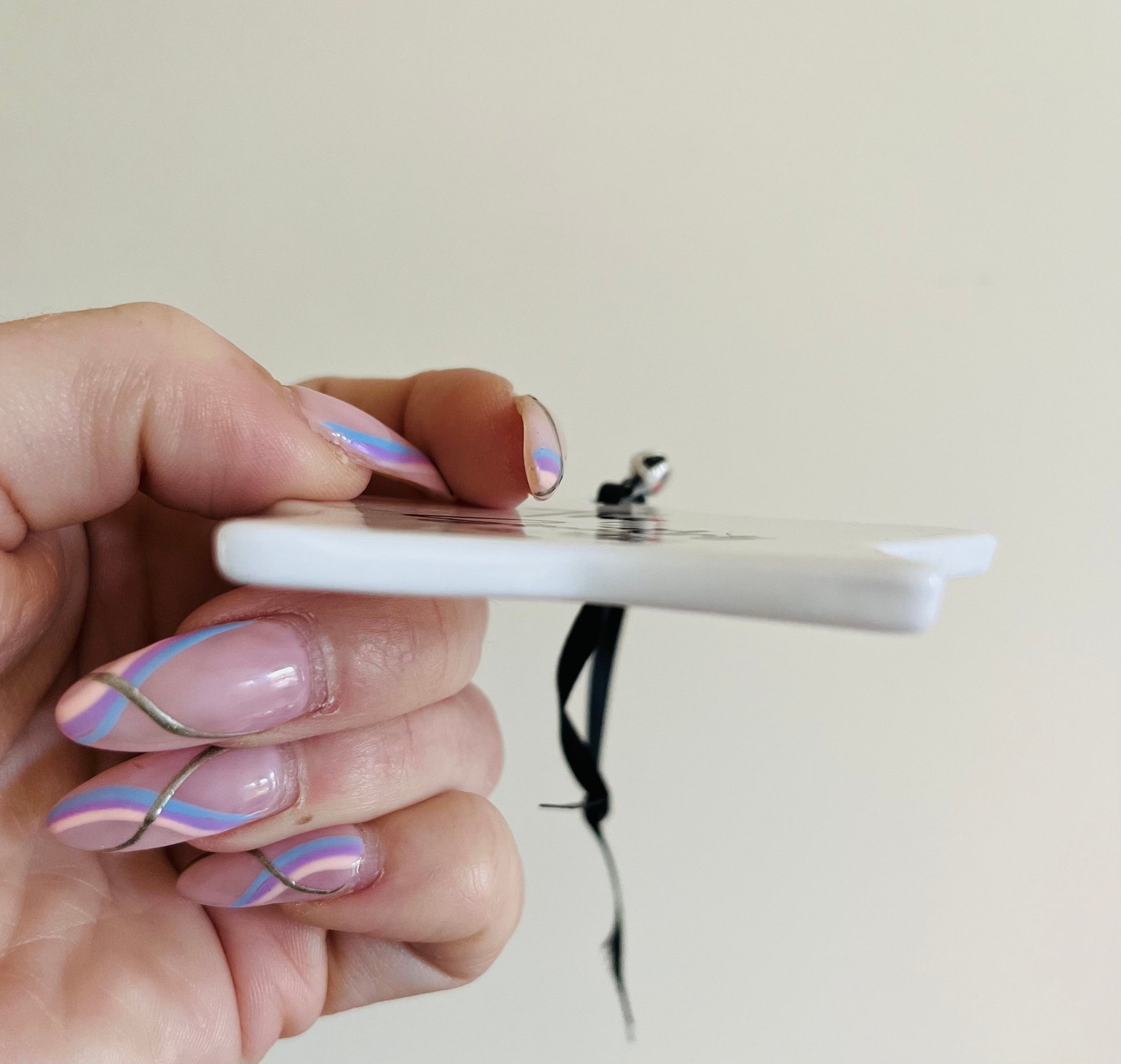 Personalised First Christmas as a Family of Three, four, five, six Ceramic Bauble. Number can be changed to suit, celebrate a new addition to your family for 2025. Strung on satin ribbon, these sweet baubles are professionally printed into the ceramic, natural detailing gives a simple and elegant design, for that perfect gift for your loved one at Christmas.