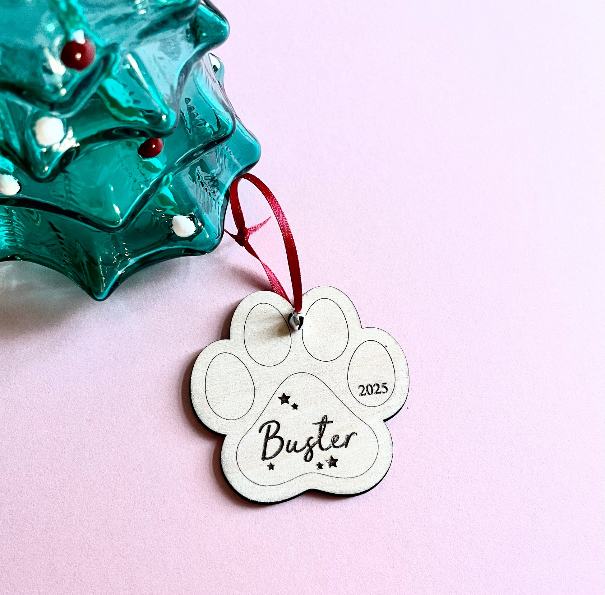 Personalised Paw Print Dog Decoration with Name for Christmas Tree