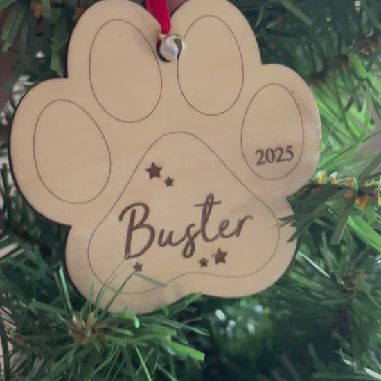 Celebrate your furry friend this Christmas with our beautiful wooden pawprint bauble, carefully engraved with your pet’s name. Perfect for honouring a beloved dog or cat, or as a keepsake for those who buy new decorations each year, this charming ornament adds a heartfelt touch to your festive decorations.