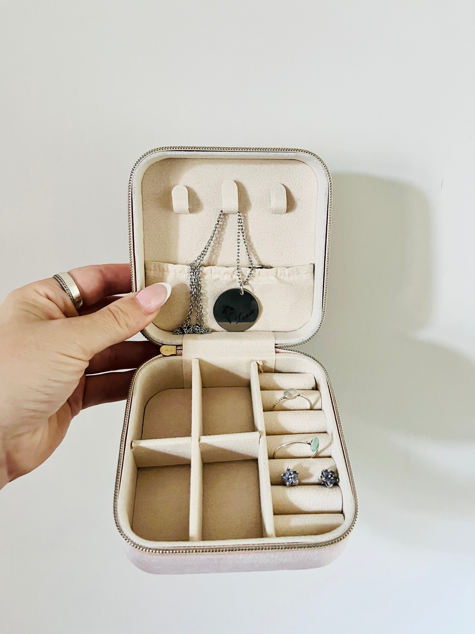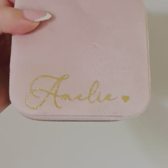 Custom Velvet Jewellery Box • Bridesmaid Gifts with Permanent Name • Travel Gift • Personalised • Birthday Gift for Her • Mother's Day Gift